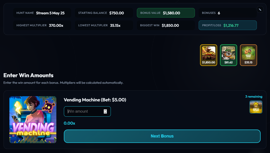 Bonus Hunt Tracking